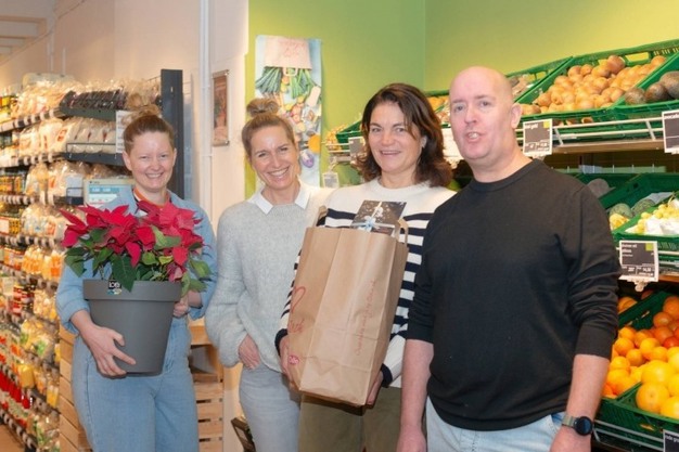 Schrijfster Sophie Zeestraten verwelkomde het 1.000ste lid van de biologische winkel aan de Aert van der Goesstraat 35. Het nieuwe lid, Arjanneke Teeuw, kreeg een tas vol bio-boodschappen en een biologische plant.