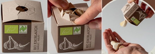 "Het idee om onze producten ook te verwerken, komt voort uit het principe No waste. Alles wat niet geschikt is voor de versmarkt, verdient een tweede leven. Voedselverspilling is niet alleen zonde van het product zelf, maar ook van de grond, het water en de energie die erin is gestoken. Daarom hebben we een project opgezet rond gepelde knoflook. We wilden een innovatief en duurzaam product maken, met een verpakking die volledig gerecycled en recyclebaar is. Door de tenen zorgvuldig te selecteren en in een handige doseerbox te verpakken, geven we knoflook een tweede kans. Vaak wordt een hele bol weggegooid omdat er maar één teen schade heeft opgelopen. Of is de maat niet de juiste. In plaats van 5% verlies, gaat dan 100% van dat product verloren."