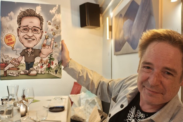 © BiobestBart Sosef ontving bij zijn afscheid een unieke karikatuur van zichzelf, gemaakt door Richard de Rijke