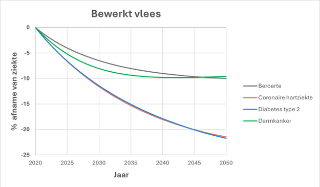 Nederland kan in 2050 ongeveer twintig procent minder nieuwe gevallen van zowel diabetes, coronaire hartziekten als beroertes tellen, als alle Nederlanders vanaf nu dagelijks twee stuks fruit eten en bewerkt vlees zoals worst en hamburgers laten staan. Dat blijkt uit onderzoek van Wageningen University & Research (WUR). De onderzoekers publiceerden hun bevindingen in het wetenschappelijke tijdschrift eClinicalMedicine.