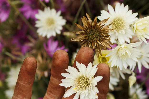 Jacolien: "We doen dit met zorg voor onze omgeving en door samen te werken met de natuur. Zo werken we met de seizoenen. Onze bloemen groeien buiten in de volle grond en in een onverwarmde kas. Op die manier kweken we gezonde en sterke bloemen die tegen een stootje kunnen. En zo kunnen wij, samen met allerlei nuttige insecten, extra lang van ze genieten. We kweken al onze bloemen zelf op, van zaadje tot volwassen bloem. Hierdoor kennen we onze bloemen als geen ander en staan we garant voor hun kwaliteit. De bloemen zijn er van mei tot en met oktober, mede afhankelijk van de weersomstandigheden."