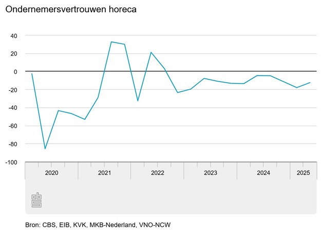 Bijna 4 weken geleden publiceerde het CBS over het ondernemersvertrouwen van de Nederlandse bedrijfstakken in het tweede kwartaal van 2025. Het ondernemersvertrouwen is voor het tweede kwartaal op rij gedaald. In de horeca verbeterde het vertrouwen echter. Desondanks was het vertrouwen van horecaondernemers het meest negatief van de Nederlandse ondernemers.