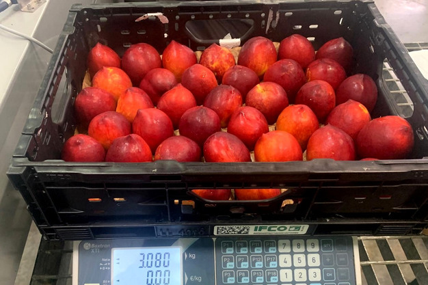 De paraguayo-oogst is deze week begonnen. "Het fruit is iets kleiner dan normaal", zegt hij, "maar in tegenstelling tot perziken en nectarines, speelt de maatvoering bij paraguayo's minder mee. Kleinere maten, zoals klasse C, zijn prima geschikt voor afzet in bijvoorbeeld punnets. Dat is dus geen probleem."
