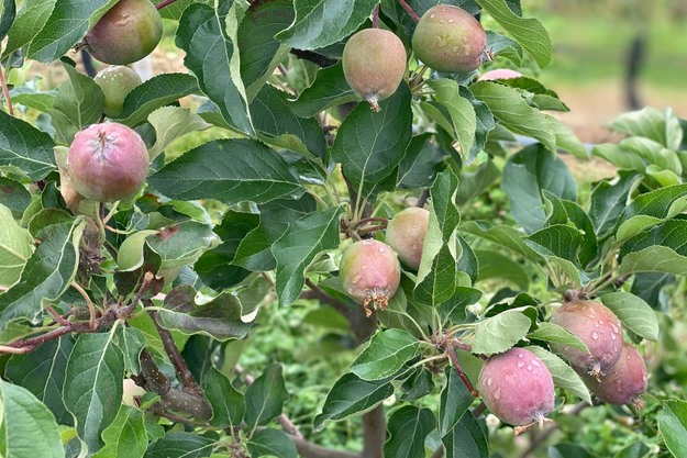 "We doen proeven met verschillende onderstammen, hoe de bomen te kweken, behandelen, pluktijdstip, bewaring. Daarnaast hebben we een blok dat volledig bio-regeneratief is. Dat wil zeggen dat er geen chemie gebruikt wordt, enkel bio-middelen. Doordat het ras dubbelresistent is tegen schurft en meeldauw, hebben we dit jaar maar een keer of 5 gespoten. Meer niet. Dat is echt een apart blok, waarbij we risico's nemen. Waar we zien hoe ver we kunnen gaan met bio en regeneratief. Met de opzet naar de toekomst toe: 'Hoe kunnen we minder gewasbeschermingsmiddelen gebruiken en hoe ver kunnen we gaan?'. Daar zijn ook dingen in mislukt. Dat moet ik toegeven, maar dat is normaal. Uiteindelijk willen we dit zo groen mogelijk doen en dat is een fulltime bezigheid. Ik moet zeggen dat we tot nu toe zeer positief verrast zijn. Er zullen ongetwijfeld nog nadelige kanten naar boven komen in de komende tijd, maar vooralsnog zijn deze nog niet gevonden", lacht Kris.