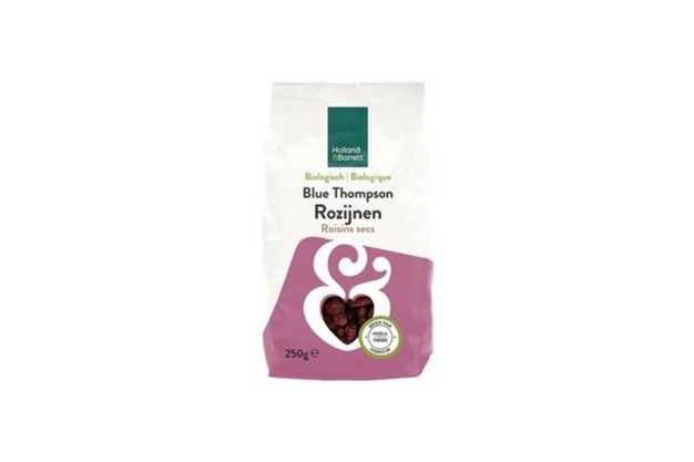 In overleg met het FAVV haalt Holland and Barrett BIO Blue Thomson rozijnen van het merk Holland & Barrett uit de verkoop en roept ze terug van bij de consumenten wegens te hoog gehalte aan Ochratoxine A.