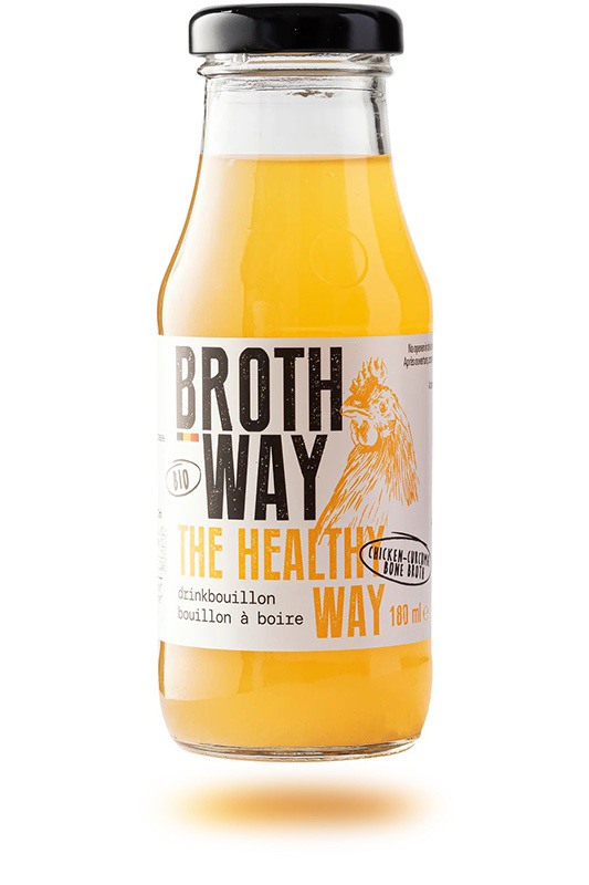 "Brothway staat voor duurzaam geproduceerde, gezonde, 100% biologische drinkbouillons zonder toegevoegde smaakversterkers of bewaarmiddelen." De basisproducten van hun product Chicken Curcuma zijn kippenbeenderen, ui, wortel, gember, appelciderazijn, zout, peper en een royale hoeveelheid kurkuma. De bouillon wordt aangeboden in glazen flesjes van 180 ml. Brothway werkt samen met lokale producenten en investeert in duurzame energie en productieprocessen.
