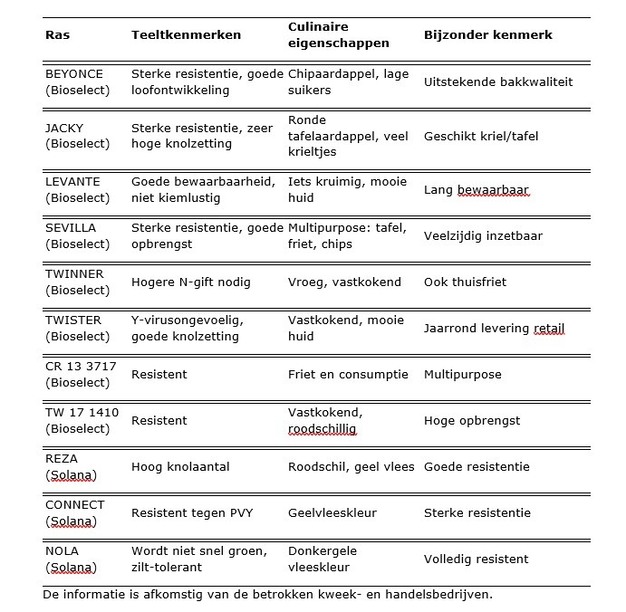 Tijdens de BioVelddag kan eenieder deze robuuste rassen niet alleen in het veld zien, maar ook proeven. Zo wordt de hele dag friet gebakken van het veelzijdige ras Sevilla, en proeft men tijdens het boergondisch veld diner de eerste nieuwe oogst Twister: een vastkokende Flevolandse aardappel met uitstekende smaak en jaarronde beschikbaarheid voor de Nederlandse retail.
