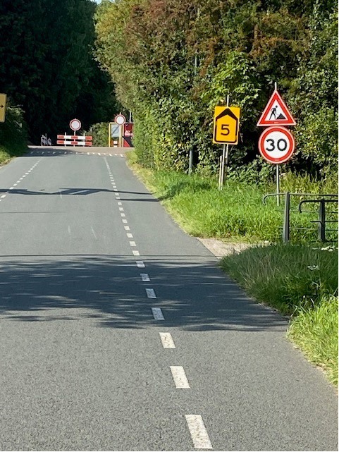 Tijd om te lachen of om te huilen: 2 wegenbouwers die elkaar tegenwerken: de ene stuurt u via omleidingsroute 5 rechtdoor en de andere sluit die af