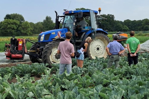 Naast deze proef werden ook twee andere proeven rond biologische gewasbescherming toegelicht. In de proef tegen bladvlekken in groene selder werden de verschillende behandelingen toegelicht, maar was er nog geen aantasting te zien. Bij de proef in savooikool waar natuurlijke vijanden werden ingezet onder netten werd net als vorig jaar nog geen werkzaamheid aangetoond, maar deze proef wordt nog verder gezet.