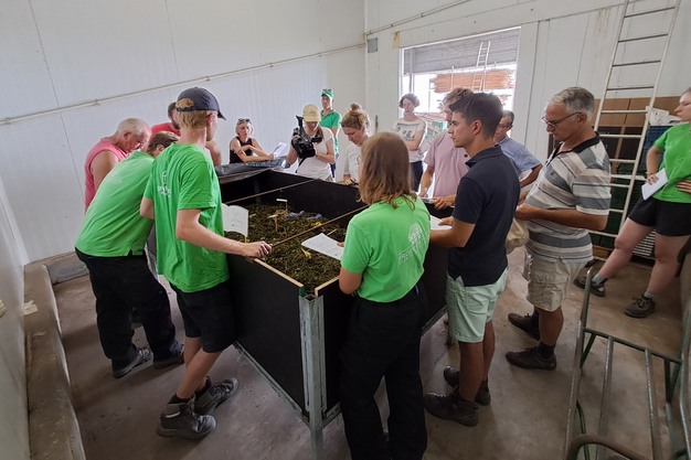De bezoekers kregen ook een inkijk in de installatie voor wormencompostering. Deze opzet werd begin dit jaar gebouwd in kader van het project Jowobo – Johnson Su, wormencompost, Bokashi en boerderijcompost in de praktijk. Wormencompost kan nuttig zijn voor bedrijven die continu kleinere hoeveelheden organisch afval hebben. De opzet, het onderhoud en de voor- en nadelen van de wormencompost werden besproken.
