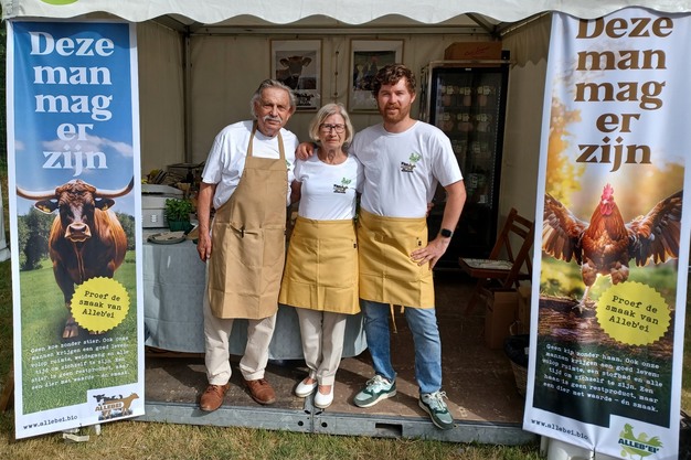 "Dit proef je terug in ons kwaliteitsvlees." Bezoekers van de Landgoedfair kunnen dat zelf ervaren. Alleb'ei serveert op deze fair broodjes met runderstoofvlees van de stier en gegrilde kipfilet van de haan.