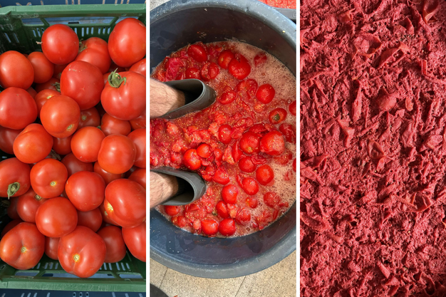 "Eerst oogstten we de overrijpe tomaten – in totaal 2000 kg, verdeeld over drie partijen. Daarna hebben we de tomaten geplet en met biologische gist 3 dagen laten fermenteren, zodat de zaadjes loskomen van het vruchtvlees. Vervolgens werden de zaden gespoeld, schoongemaakt met natuurazijn en snel gedroogd."