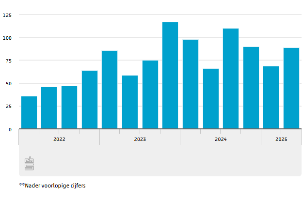 In het tweede kwartaal van 2025 zijn 89 bedrijven in de detailhandel failliet verklaard. Dat is bijna 35 procent meer dan in dezelfde periode een jaar eerder. Toen werden 66 faillissementen uitgesproken. Het aantal faillissementen in de hele economie nam in deze periode af met 7 procent.