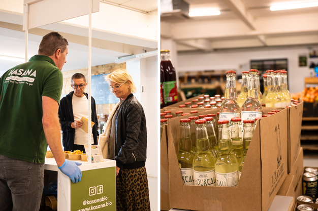 Tijdens het openingsweekend werden biologische leveranciers uitgenodigd om hun producten te laten proeven en hun verhaal toe te lichten. "We hadden bijvoorbeeld onze bio-courgette- en pompoenteler, die een toren met courgettes en pompoenen had opgebouwd waar klanten gratis van mee mochten nemen. Dat was een groot succes."
