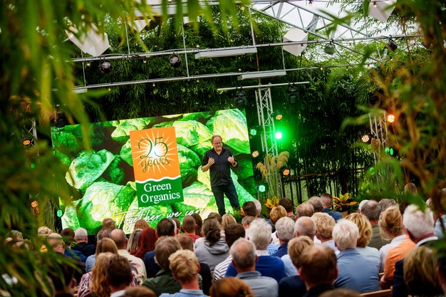 Ruim 250 gasten uit onder andere de teeltwereld, afzetmarkten, besturen, familie en medewerkers alias "Samenwerkers", genoten van een middag en avond op de natuurcamping en evenementenlocatie Netl Park (Kallumaan) nabij Kraggenburg. Onder het genot van een drankje en live muziek werden de gasten vanaf 15.00 uur in een grote voormalige sfeervolle kas ontvangen. Jan, die persoonlijk de gasten ontving, had de regie strak in handen. "Dat past bij mij, samen met mijn vrouw Ellen wilden we dat deze unieke mijlpaal dezelfde sfeer en toegankelijkheid zou uitstralen als de cultuur van Green Organics. Onze gasten moesten zich thuis voelen als dank voor hun tomeloze inzet. Iedereen die er was, heeft de afgelopen 25 jaar een bijdrage geleverd aan het succes van Green Organics."