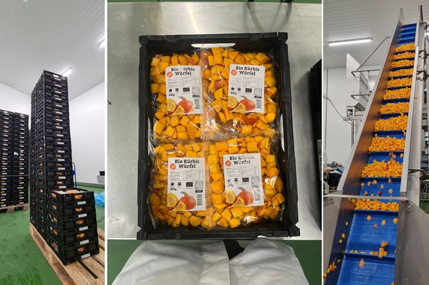 Deze week volgde een mijlpaal met de eerste grote order pompoenblokjes aan een grote Oostenrijkse retailer. "De afgelopen jaren leverden we vooral halffabricaat. Ik ben heel trots dat we nu een eindklant hebben gevonden voor ons verpakte eindproduct van de beste kwaliteit pompoenen, gesneden aan de bron. Voor ons is dit een nieuwe tak van sport en het was best een uitdaging om omzet te genereren voor onze snijkeuken", aldus Rinke.