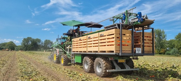 Een andere uitdaging vormt het perfectioneren van de oogst. "Sinds twee jaar vindt bij ons de oogst hoofdzakelijk machinaal plaats. We hebben nauwelijks personeel meer op het land, behalve de chauffeurs van de trekkers en machine", vertelt Rinke. "Dat is wel een uitkomst, want er is steeds minder personeel te vinden dat op het land wil werken. En we halen in vier weken tijd toch 6.000 ton pompoenen binnen."