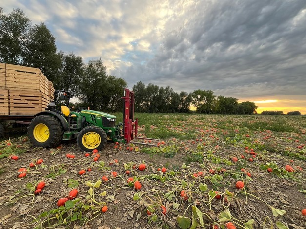 Tholen - De pompoenenoogst is bij het biologische De Terp Squashpackers in Erichem momenteel in volle gang. "We zijn druk met oogsten. Half augustus zijn we gestart en we gaan nog een week of twee door", vertelt Rinke Robbers. "We hebben een mooi groeiseizoen achter de rug met goede opbrengsten en een goede kwaliteit. De oogst is wel 20% groter dan andere jaren."