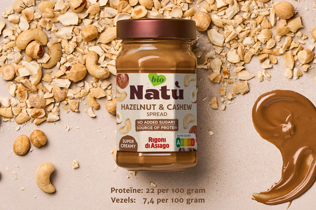 Het Italiaanse familiebedrijf Rigoni di Asiago introduceert een nieuwe notenpasta bij Albert Heijn: Natù Hazelnut & Cashew. Deze bevat geen toegevoegde suikers en bevat proteïne en vezels. Natù Hazelnoot & Cashew combineert geroosterde hazelnoten met de smaak van cashewnoten. "Het resultaat doet denken aan pralinépasta, maar dan zónder de suikers: denk de gezondere versie van la dolce vita."