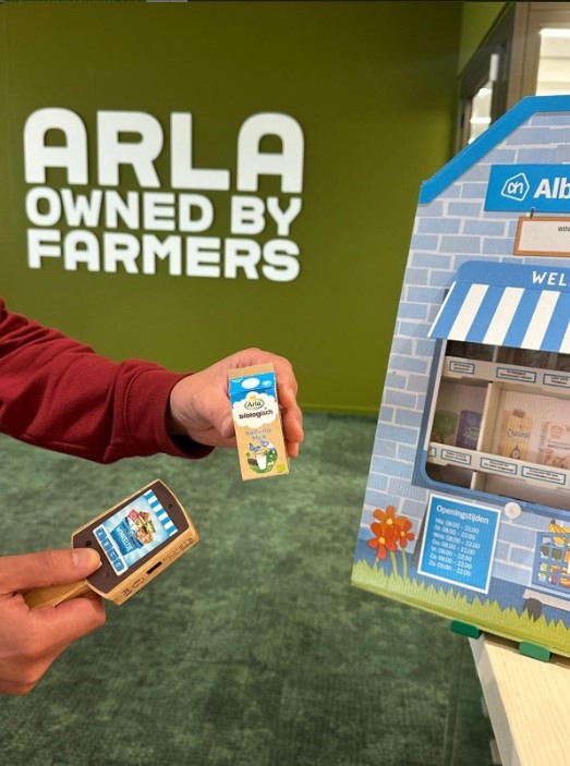 "En het wordt nóg leuker: door de barcode van de mini's te scannen met de zelfscanner, leren kinderen a.d.h.v. een quiz meer over koeien, de houdbaarheid van melk en de nutritionele waarde van zuivel. Zo combineren we plezier met kennis!"