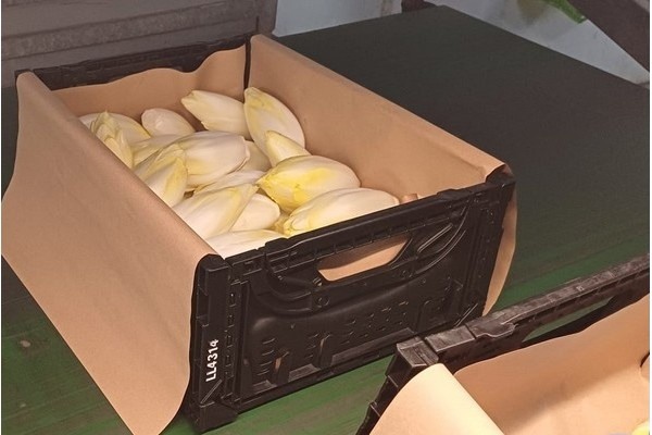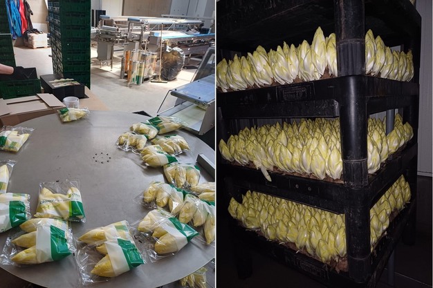 Links voorverpakte witlof voor de Duitse retail