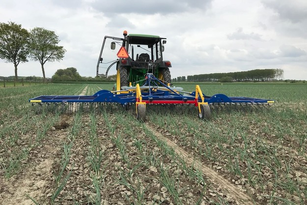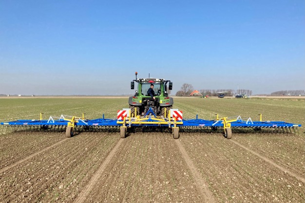 Daarna volgt opnieuw een cruciale fase. "Zodra het gewas bovenkomt, ga je er weer vroeg doorheen. Als je het juiste moment kiest, waarbij het onkruid nog het meest kwetsbaar is, kun je een enorm resultaat behalen. Naarmate het gewas groter wordt, kan je steeds sneller en met meer druk werken."