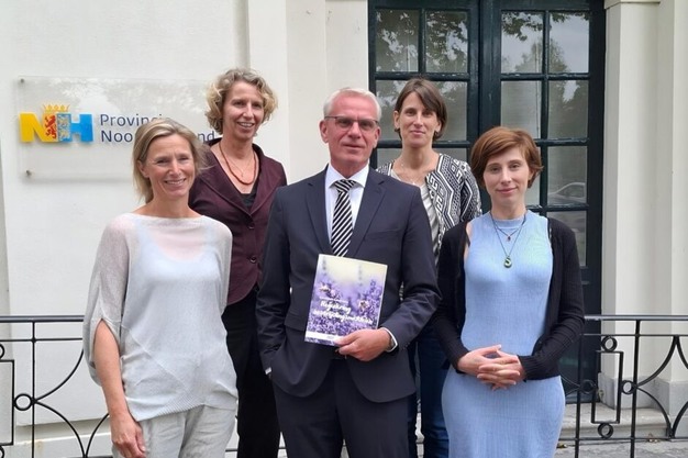 De overhandiging van het eerste exemplaar van de handleiding aan de gedeputeerde van Noord-Holland Jeroen Olthof.
