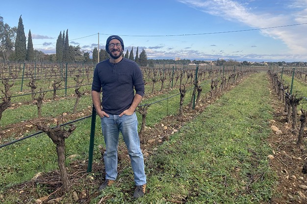 © Vine to WineDomaine Ortola met Nelson Ortola in de wijngaard. Op de achtergrond Narbonne