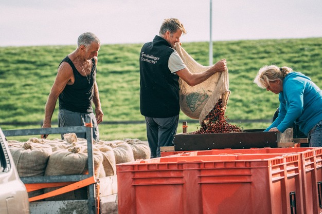 "Daarnaast werken we nauw samen met Staatsbosbeheer, want wij pachten onze gronden van hen, en die loopt zeer goed", gaat Arnoud verder. "De heidevelden staan onder druk door verruiging, en volgens de Europese regels moet heide echt heide blijven. Als je die niet onderhoudt, wordt het bos. Een gezonde heide is goed voor de biodiversiteit én voor onze cranberryvelden. Onze plukkers helpen daar ook bij. Wanneer ze met de hand door het veld plukken, kammen ze als het ware het oude hout omhoog. Daarna maaien we op vaste hoogte om het dode materiaal te verwijderen. Zo herstellen we de heide en krijgen de cranberryplanten weer ruimte om goed te groeien. Het is mooi dat onze werkzaamheden zo bijdragen aan natuurbeheer. Bovendien helpen zij ons met een lichte rupsmaaier die het maaisel voorzichtig afvoert zonder de ondergrond te beschadigen. Dat helpt enorm bij het onderhoud van de velden. Op deze manier creëren we een win-winsituatie voor beide partijen."