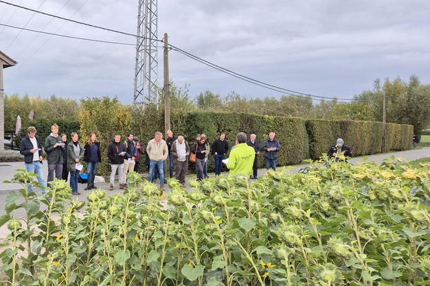 Vorig jaar gingen ze voor het eerst van start met de teelt van zonnebloem voor kuilvoerdoeleinden in het kader van een CCBT-project. Dit jaar werden deze proeven verder gezet. De proeven moeten in de eerste plaats uitwijzen of zonnebloemen meerwaarde kunnen bieden in het melkvee rantsoen. Ze sprongen in het oog omwille van hun klimaatrobuuste karakter, evenals hun vetfractie, en dus het potentieel tot het aanbrengen van onverzadigde vetzuren in het herkauwerrantsoen. Daarnaast kan men zonnebloemen nog tot tamelijk laat in het seizoen zaaien, waardoor men ze (in theorie) nog na de oogst van wintergraan op het veld kan installeren. Hierdoor zou men twee ruwvoergewassen per jaar van één perceel kunnen halen. In deze optiek werd er daarom binnen deze proeven gevarieerd met het zaaitijdstip. Nu, in praktijk lijkt dit lastiger haalbaar te zijn. Vorig jaar zorgde de natte zomer voor aanzienlijke opbrengstverliezen bij een later zaaitijdstip. Dit kwam voornamelijk doordat Sclerotinia de overhand kreeg alvorens er een optimaal DS% werd bereikt. Ook dit jaar lijkt het erop dat ze met deze latere zaai lagere opbrengsten zullen oogsten. Ditmaal is het witziekte dat roet in het eten gooit. Ze willen het potentieel van zonnebloem na graan nog niet helemaal verwerpen, maar er lijken toch wel belangrijke aandachtspunten te zijn.