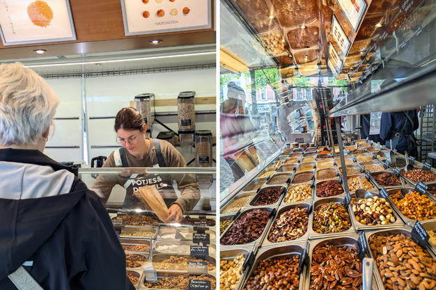 De oorsprong van Potjes en Deksels ligt in de coronaperiode. "We wilden eigenlijk een afvalvrije winkel beginnen, maar toen de pandemie uitbrak, werd dat onmogelijk. Daarom zijn we gestart met een rijdend concept", vertelt Tessa. "We reden met een klein busje door de wijken en verkochten verpakkingsvrije noten rechtstreeks aan consumenten."