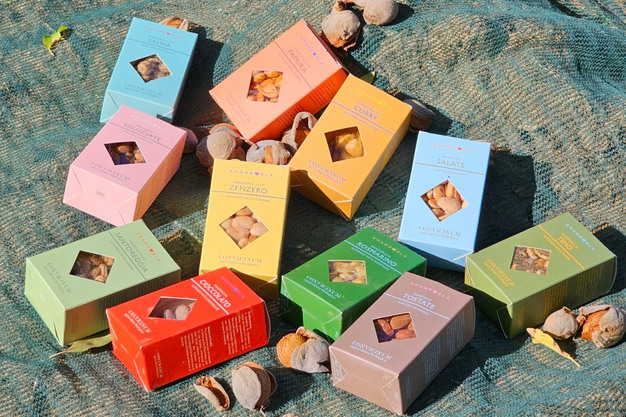 Convicinum speelt daar handig op in met verschillende verpakkingsvormen. Voor de retail zijn er biologische, gepelde amandelen in zakjes van 120 gram, 500 gram en 1 kilo. Voor groothandels en traditionele verkoopkanalen zijn niet-gepelde amandelen beschikbaar in zakken van 1, 5 en 10 kilo. Daarnaast is er een luxe lijn in geschenkverpakkingen van 120 gram, bedoeld voor de fijnproever en de export.