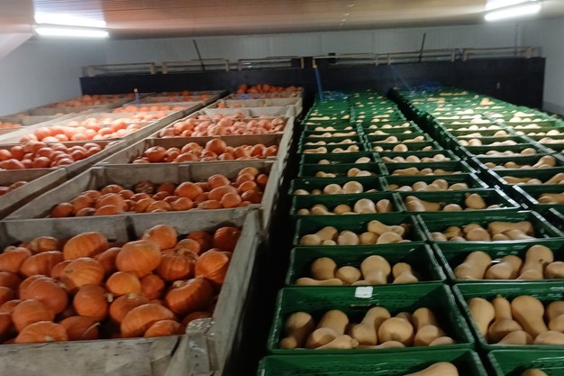 "In knolselderij zijn we ook redelijk gedekt, maar naar pompoenen mag de vraag wel wat beter", vervolgt Pieter. "De oogst is wel mooi binnen. We hebben een nieuwe wasinstallatie en droogwand, dus dat helpt. Veel biotelers in België drogen hun pompoenen nog gewoon los in de loods, maar wij kunnen het nu beter gecontroleerd doen. Nu is het hopen dat we later in het seizoen nog wat extra vraag krijgen. Het zachte weer helpt de consumptie van wintergroenten natuurlijk niet. Als het warm is in november, kiezen mensen eerder voor tomaten en komkommers dan voor prei en pompoen. Volgende week wordt kouder weer voorspeld, dus hopelijk helpt dat."