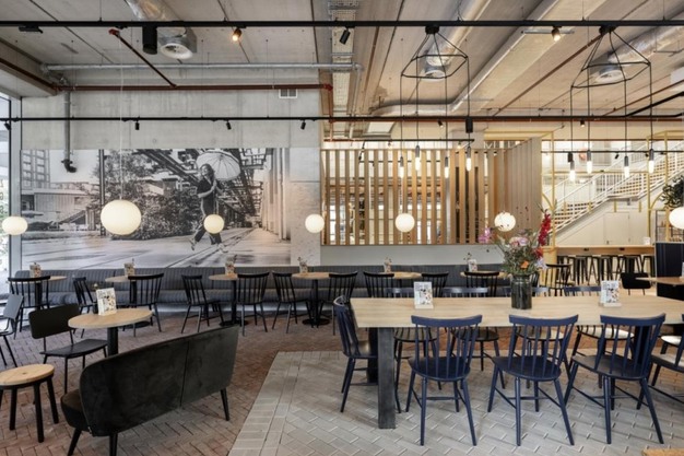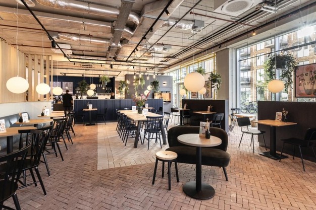 Het contrast met de binnenstad konden ze direct voelen. "Op de Kleine Berg blijven gasten vaak langer hangen voor een lunch of een borrel," vertelt Marc. "Op Strijp-S is de doorloop hoger. Mensen komen even snel binnen voor een cappuccino, werken een uurtje aan de lange tafel of halen iets to go tussen twee afspraken door."