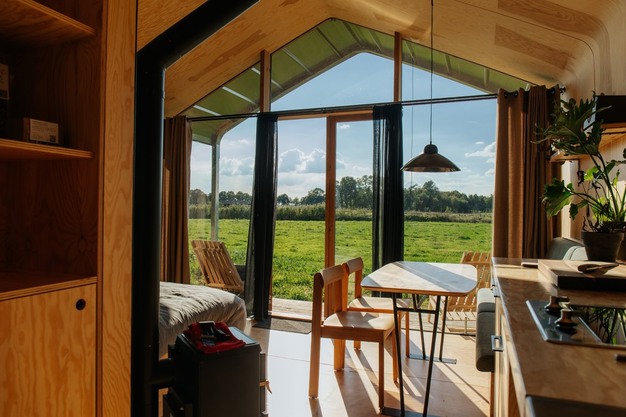 Tholen – Op Erve Kiekebos in Empe is Cabiner Harvest sinds deze maand volledig operationeel. In oktober waren al 'proefslapers' welkom tegen een gereduceerd tarief. De soft launch volgde op een traject van bijna twee jaar waarin vergunningen, bouw en inrichting samenkwamen. De prefab Wikkelhouse-cabins werden begin juli geplaatst.