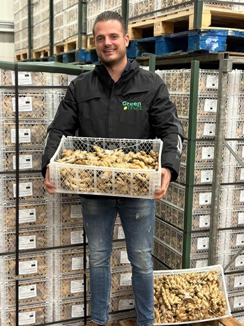 © GreenFruit"Bij Greenfruit hebben wij jaarrond limes en biologische gember en kurkuma beschikbaar. Voor de import van biologische gember en kurkuma werken we samen met OML agroinversiones uit Peru. Met deze volledig gecertificeerde producent zijn we een samenwerking aangegaan en doen wij het commerciële stuk voor hun binnen Europa. Op dit moment hebben we wekelijks een aantal containers binnen en zijn we hard bezig om deze business verder op/ uit te bouwen. We verkopen per pallet, maar een programma voor een bepaalde periode kunnen we ook leveren. Het is maar net wat de klant zoekt."