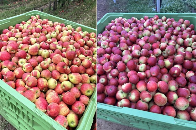 Wat de appels betreft, heerst er ook tevredenheid bij Gerard. "We hebben voornamelijk Santana en Natyra hangen. Er is ook nog wel wat Jonagold, maar deze zijn we stukje voor stukje aan het rooien voor GoodnessMe. De appeloogst is goed gelukt, met mooie volumes. Het gebruik van bloemblazen heeft duidelijk bijgedragen aan een gelijkmatige maat en goede bedunning. Al met al ben ik redelijk tevreden over hoe het seizoen verloopt. Het tempo van de verkoop mag misschien iets hoger, maar de voorbereiding en kwaliteit van zowel peren als appels zijn goed."