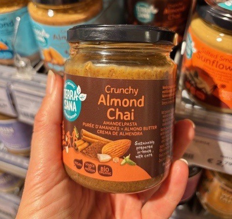 Met de campagne 'Altijd biologisch, nooit saai' introduceerde Terrasana een chai-variant in het notenpastaschap, die populair bleek. - Granen uit Nederland