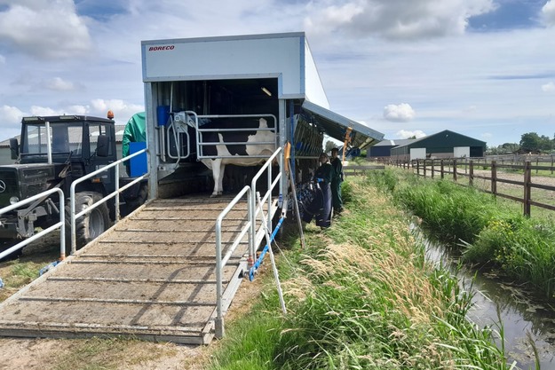 De toevoeging van Collie, waarbij koeien via een halsband met GPS en geluidssignalen binnen virtuele percelen blijven, maakte het systeem compleet. Het scheelt fysiek werk, zoals dagelijks stripgrazen, en geeft tegelijk extra inzicht. "Ik kan op mijn telefoon zien waar elke koe loopt. We hebben al een paar keer een koe op tijd uit de sloot gehaald doordat we zagen dat ze achterbleef." Voor Dirk is het bijvangst, geen doel op zich, maar wel illustratief voor de mogelijkheden.