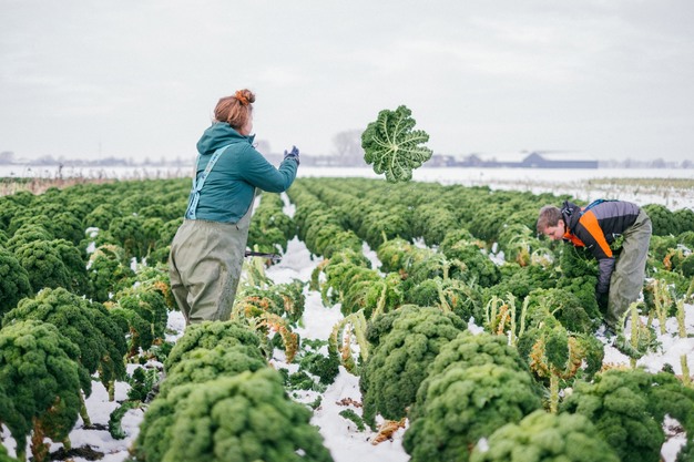 Wat er nu, hartje winter, vooral van het land komt en zijn weg vindt naar de klanten, zijn volgens Floor de kolen in alle soorten en maten. "Het is nu echt kolentijd. Boerenkool, palmkool, rode en witte kool — dat zijn nu de producten waar je het verschil proeft."