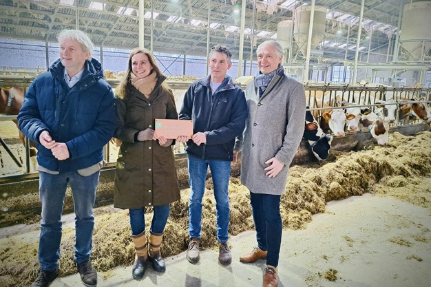 © Gemeente DinkellandGedeputeerde Maurits von Martels, wethouder Richard de Way, Susan Bonekamp van Staatsbosbeheer en biologische melkveehouder Chris Kotte