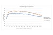 Figuur 3: Ureumgehalte in de melk van koeien met verschillende eiwitgehaltes in het rantsoen (Laag: 13,3%; Midden: 14,3%; Hoog: 15,4%) tijdens de eerste lactatie (44 weken) van de proef.