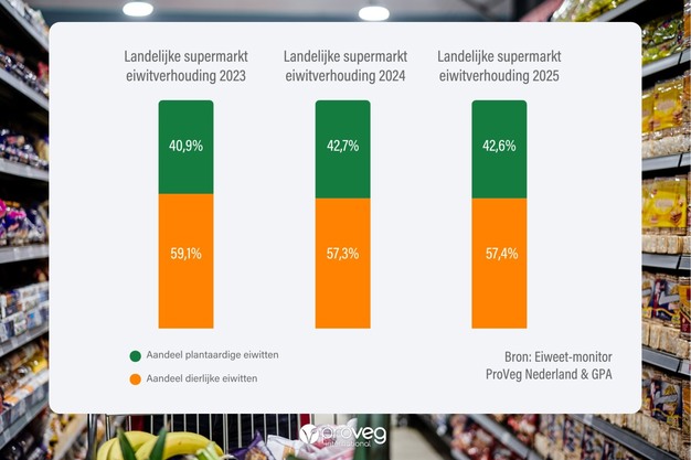 Daarnaast zagen supermarkten een toename van dierlijke producten die zijn verrijkt met plantaardige ingrediënten, zoals gehakt met erwten-eiwit en melk met toegevoegd plantaardig eiwit. "Deze producten dragen bij aan CO₂-reductie en de nodige verschuiving naar meer plantaardig," aldus Freya Hiemstra van ProVeg Nederland.