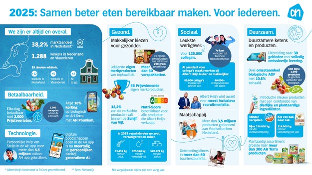 De biologische groei maakt deel uit van een bredere duurzaamheidsstrategie. Zo groeide het plantaardige AH Terra-assortiment naar 351 producten en werd gewerkt aan vermindering van voedselverspilling en CO₂-uitstoot.
