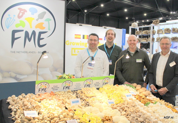 De hele sector is goed vertegenwoordigd tussen de ruim 100 standhouders, van leveranciers van mycelium, verpakkingen, oogstrobots en supplementen en in toenemende mate ook AI-oplossingen. Fresh Mushroom Europe was de enige paddenstoelenhandelaar die als exposant op de beurs aanwezig was.