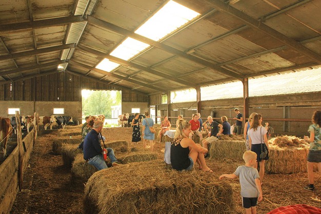 Meehelpen op het erf is voor veel kinderen een vast onderdeel van het programma. Zij voeren de koeien en brengen met kruiwagens strooisel naar de kalfjes.