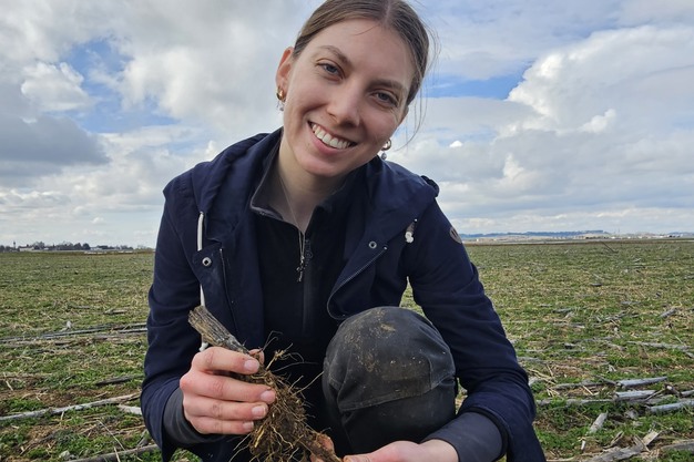 Dochter Theresa Fischer, die naast haar studie meewerkt op de boerderij, laat met een bodemmonster zien hoe diep wortels en wormgangen reiken. Volgens haar ontstaat zo een structuur die gunstig is voor plantengroei. Ook het bodemleven is duidelijk aanwezig. "Als je eraan ruikt, heeft de grond een aangename, frisse geur – een beetje zoals bosgrond", zegt Susanne Fischer. Volgens haar en Theresa is dat een teken van een actief bodemleven en humusvorming.