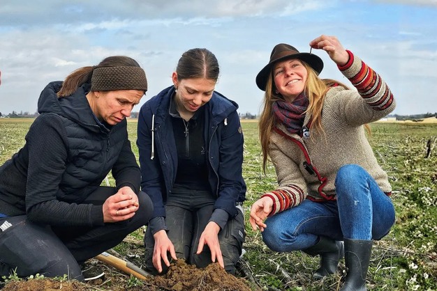 Tijdens het bezoek staat vooral de bodem centraal. Een schep grond laat een zichtbaar levend systeem zien van kruimelige aarde, wortels en gangen van regenwormen. Die wormen spelen volgens Susanne Fischer een belangrijke rol. "Onze belangrijkste medewerkers zijn meestal onzichtbaar," zegt ze. Ze doelt daarmee op regenwormen, die bijdragen aan het losmaken van de bodem en de afbraak van plantenresten.