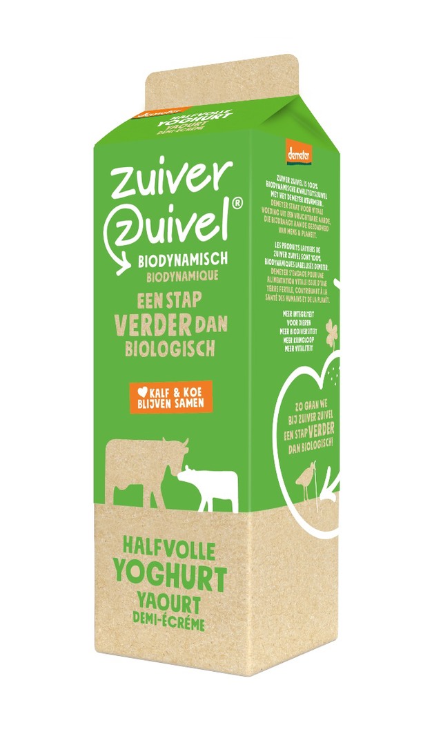 Vanaf deze week is het assortiment 'Kalf & koe blijven samen' zuivel in de biologische speciaalzaak uitgebreid. Zuiver Zuivel halfvolle yoghurt wordt vanaf nu geproduceerd van melk waarbij kalf en koe samenblijven. Met deze stap maakt het biodynamische merk het zuivelschap van de bio-speciaalzaak nog een stukje diervriendelijker.