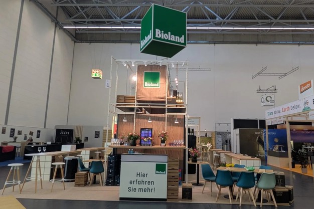 Op de nieuwe stand van Bioland presenteerden wijnboeren uit de Pfalz, Rheinhessen en de Rheingau hun wijnen op de internationale wijnbeurs ProWein 2026. Een aparte sectie voor biologische wijnbouw en een duidelijke interesse in alcoholarme producten onderstrepen het groeiende belang van biologische wijnproductie. Op de stand konden vakbezoekers onder meer alcoholvrije producten, mousserende wijnen, natuurwijnen en klassieke cépagewijnen proeven. Samen met de biologische verenigingen Demeter en Eocvin organiseerde Bioland negen rondleidingen langs de stands van deelnemende wijnhuizen. Wijnen kwamen onder andere van Gut von Beiden, Hahn-Pahlke, Porzelt en Meier uit de Pfalz en van Weingut Bäder en Weingut Corvers-Kauter uit Rheinhessen en de Rheingau. Ook biologische kazen van de Ökologische Molkerei Allgäu en Vallée Verte werden tijdens proeverijen aangeboden.